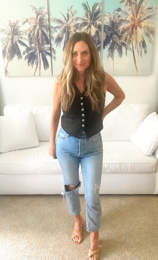 Look #4: Black Vest (not mine but similar), Nude Heel Sandal